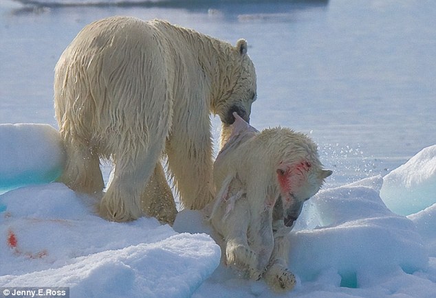 สะเทือนอารมณ์กันไปตาม ๆ กันสำหรับภาพของหมีขั้วโลก ที่แสดงออกซึ่งสัญชาตญาณของการเอาชีวิตรอดด้วยการกินพวกเดียวกันเองให้เห็นกันแบบซึ่ง ๆ หน้า แถมยังเป็นที่เชื่อกันอีกว่า การกินพวกเดียวกันเองของหมีขั้วโลกนับวัน ยิ่งจะมีให้เห็นมากขึ้นเรื่อย ๆ อีกด้วย