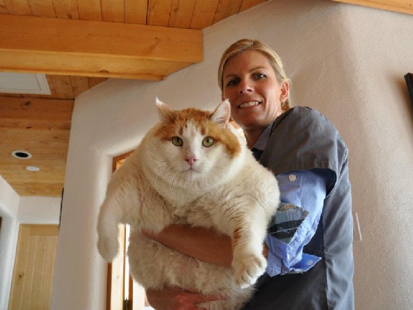 และที่เห็นอยู่นี่ก็คือเจ้า "เมี๊ยว" แมวเหมียววัย 2 ขวบ จากรัฐนิวเม็กซิโกของสหรัฐ ที่ไม่รู้ว่าทั้งชีวิตนี้มันเคยวิ่งเล่น จับหนูเหมือนกับแมวตัวอื่น ๆ หรือเปล่า เพราะหากจะเทียบอายุกับน้ำหนักของมันแล้ว ดูเหมือนว่ามันคงจะค่อย ๆ สะสมน้ำหนักมาตั้งแต่เกิดเลยทีเดียว ก็แหม.. แมวอะไร เกิดมาลืมตาดูโลกได้แค่ 2 ปี แต่น้ำหนักกลับพุ่งทะลุไปแล้วถึง 18 กิโลกรัม!! หนักพอ ๆ กับเด็กอายุ 5-6 ขวบทั้งคนเลยล่ะ