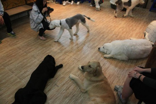 ขอพาทุกท่านไปยังเมืองปูซาน ประเทศเกาหลีใต้ ที่ซึ่งมีคาเฟ่สำหรับน้องหมาให้ได้นั่งเล่นกันแล้ว โดยชั้นล่างนั้นเปิดเป็น Pet Shop แต่ชั้นบนทำเป็นคาเฟ่มะหมา ที่จุเจ้าตูบหลากสายพันธุ์ได้กว่า 20 ตัว เป็นสถานที่ที่ให้เจ้าตูบได้มาวิ่งเล่น เดินเล่น พบปะกับเจ้าตูบตัวอื่น ๆ เรียกได้ว่า เป็นแหล่งชุมชนของเจ้าตูบเลยล่ะ ส่วนเจ้าของก็สามารถไปทำอะไรอย่างอื่นได้ จะไปนั่งจิบกาแฟ ดื่มชา ดูเจ้าตูบวิ่งเล่นกันก็ยังได้