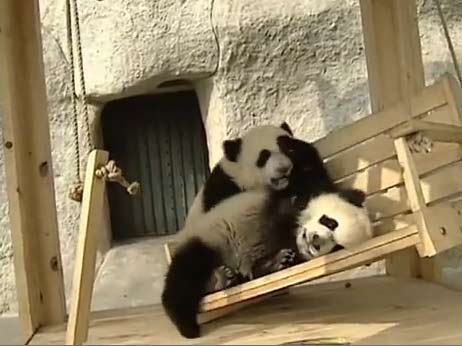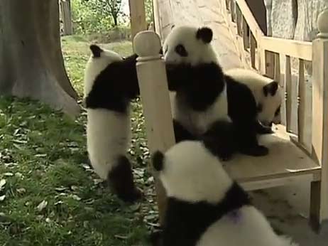 และนี่ก็คือคลิปวิดีโอน่ารักน่าหมั่นเขี้ยวของลูกแพนด้า 4 ตัวในศูนย์อนุรักษ์แพนด้าเฉิงตู มณฑลเสฉวนของจีน ที่กำลังเล่นปีนป่ายสไลเดอร์อย่างซุกซนอยู่ภายในสนามแพนด้าเล่น(อิอิ) ที่ทางศูนย์อนุรักษ์สร้างขึ้นมาเพื่อพวกมันโดยเฉพาะ โดยหลังจากที่เจ้าหน้าที่ศูนย์ได้พาพวกมันขึ้นบันไดลองเล่นสไลเดอร์อยู่ 2 รอบ เจ้าแพนด้าตัวอ้วนกลมทั้ง 4 ก็ดูเหมือนจะสนุกสนานและชอบอกชอบใจกันสุด ๆ และเล่นกันเองโดยไม่สนใจพี่เลี้ยงแล้วซะงั้น ทั้งผลัดกันปีนป่ายลื่นไถลลงมา ทั้งพร้อมใจกันลื่นไถลจนหกขะเมนตีลังกาชนกันบ้าง