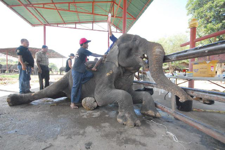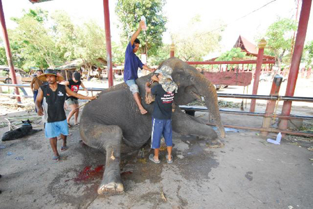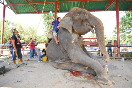 เมื่อเวลา 10.00 น.วันนี้ (15 ก.ย.) นายทองเหรียญ มีพันธ์เจ้าของวังช้างอยุธยา และ เพนียด ต.สวนพริก อ.พระนครศรีอยุธยาจ.พระนครศรีอยุธยา กล่าวว่า ช้างพังยุ้ย ช้างแก่ อายุ 80 ปีซึ่งเป็นช้างที่ถูกนายทุนใช้ลากซุงตลอดทั้งชีวิต จนสภาพร่างกายซูบผอมโครงสร้างกระดูกเสีย ขาคู่หลังเล็กกว่าขาคู่หน้า หัวเข่าบวมได้ถูกปลดระวางหลังทำงานไม่ไหว วังช้างอยุธยาและเพนียด และมูลนิธิคลบาลได้ไปซื้อมาฟื้นฟูร่างกายและสภาพจิตใจ มานานกว่า 10 ปีถูกนำมาเลี้ยงไว้อยู่ในความดูแลของมูลนิธิคชบาลมาโดยตลอดมีน้ำหนักตัวประมาณ 3,500 กิโลกรัม ได้ล้มป่วยลง วันนี้อาการทรุดหนักอาการยังน่าเป็นห่วง การรักษาผ่านไป 24 ชั่วโมง พบ เพดาน ริมปากแห้งเผือดน้ำหนักตัวกว่า 3ตันกดทับขาหลังที่ยืนไม่ได้ซึ่งทีมสัตวแพทย์เป็นห่วงว่าจะติดเชื้อ