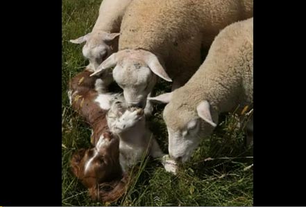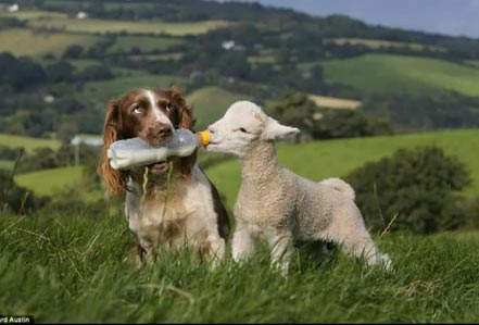 เมื่อวันที่ 18 กันยายนที่ผ่านมา เว็บไซต์เดลิเมลของอังกฤษ เผยภาพความน่ารักของ เจส เจ้าตูบพันธุ์ค็อกเกอร์ สปริงเกิล สแปเนียล วัย 10 ปี คาบขวดนมเลี้ยงฝูงลูกแกะน้อย เป็นภาพที่น่ารักน่าเอ็นดูมากมาย